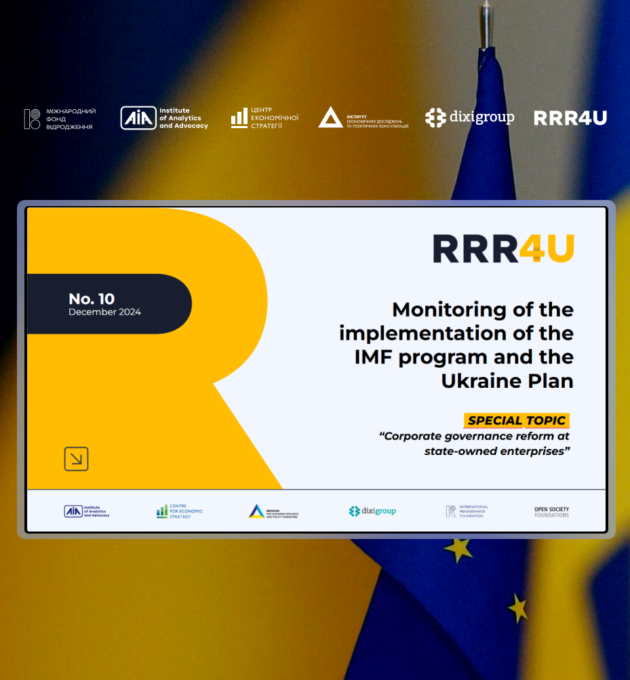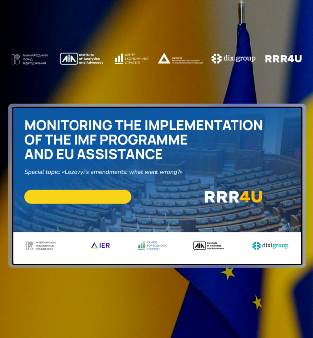 To this end, the loan memoranda include structural benchmarks (IMF) and commitments (EU) – reforms and changes that Ukraine must implement to achieve macroeconomic stability and create the basis for economic growth. That is why the RRR4U consortium is launching regular monitoring of Ukraine’s implementation of the benchmarks and commitments.