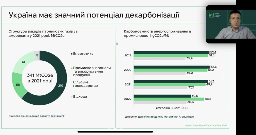 Також він пояснив, де Україна може взяти такі кошти. Ukraine Facility Pillar 2 передбачає спрямування 20% фінансування на проєкти, які матимуть позитивний вплив на декарбонізацію та збереження довкілля. МФО декларують амбітні цілі збільшення обсягів зеленого фінансування в короткостроковій перспективі. Система торгівлі викидами, окрім стимулювання додаткових інвестицій в декарбонізацію, може стати одним з джерел фінансування зелених проєктів. Адже доходи будуть спрямовуватись у Фонд декарбонізації та енергоефективної трансформації.