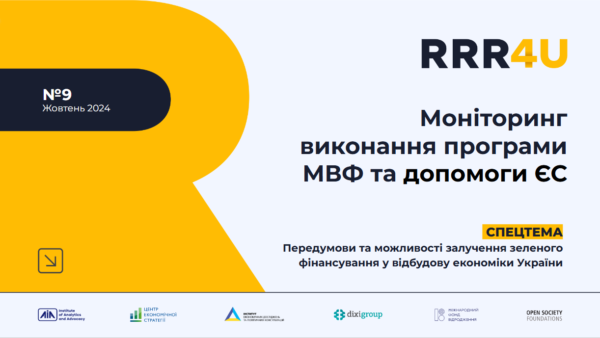 RRR4U (Resilience, Reconstruction and Relief for Ukraine) — це консорціум чотирьох українських організацій громадянського суспільства: Центр економічної стратегії / Centre for Economic Strategy, Інститут економічних досліджень та політичних консультацій, Інститут аналітики та адвокації / Institute of Analytics and Advocacy та DiXi Group. Підготовка Моніторингу відбувається за підтримки Міжнародний фонд “Відродження”.